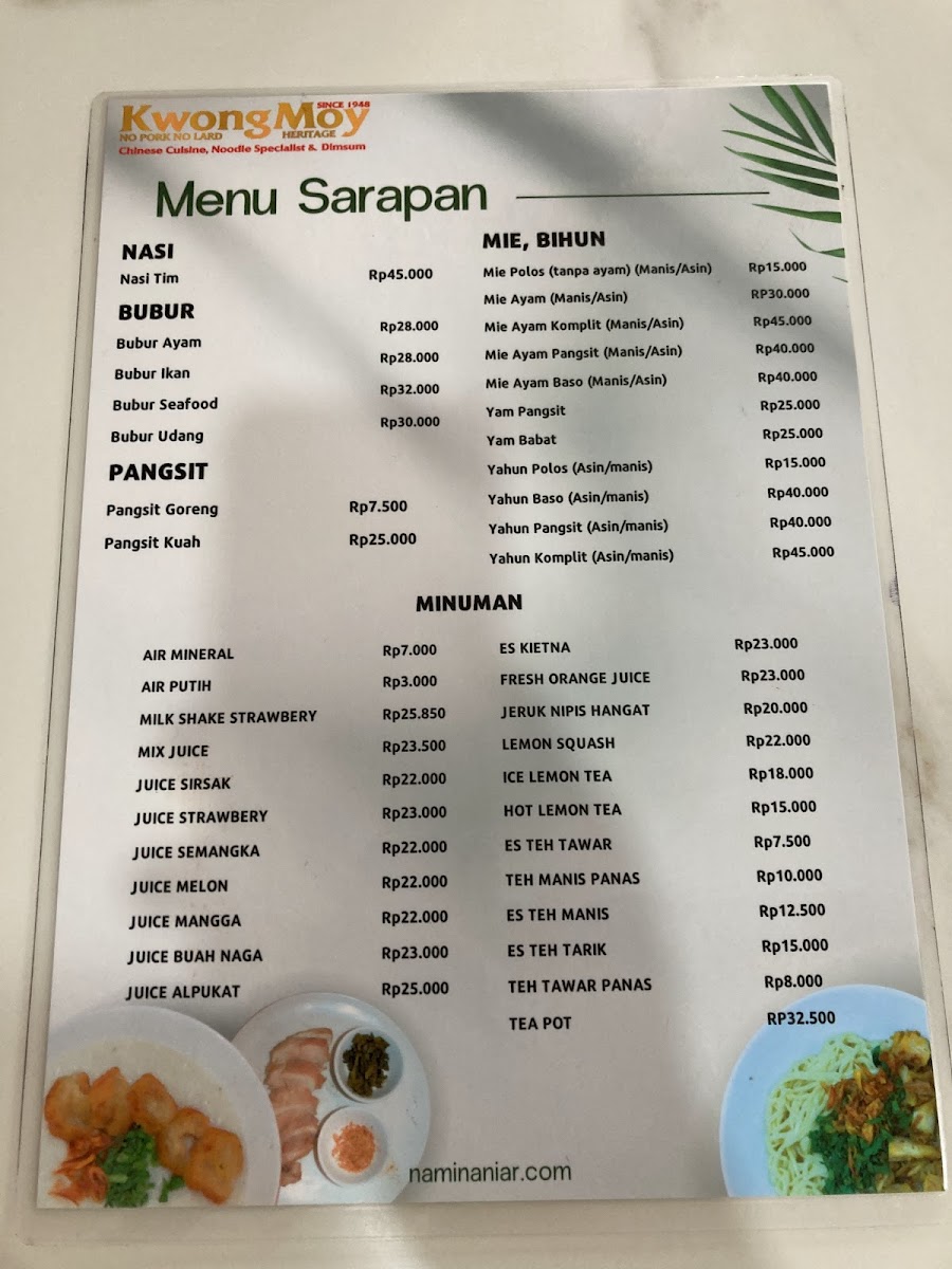 Introducing the Menu at KwongMoy Heritage Cianjur